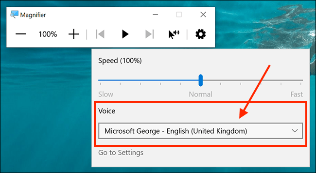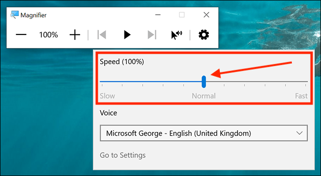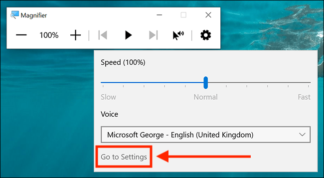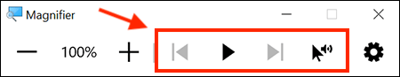 While using the Magnifier you can have text read aloud by using keyboard shortcuts or the controls embedded on the Magnifier itself.
